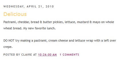 So in the spirit of the good ol’ days of the internet, I’m going to throw out a few words and links and pictures every now and then. Just for me. Just for fun. You can read along if you like. Or not! Like my grandmother says: It’s whatever. I don’t care!